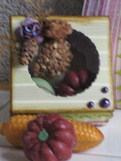 In het doosje chocolaatjes gedaan in herfstvormpjes (zoals hiervoor het pompoentje en de maiskolf),lekker hoor ;) ...