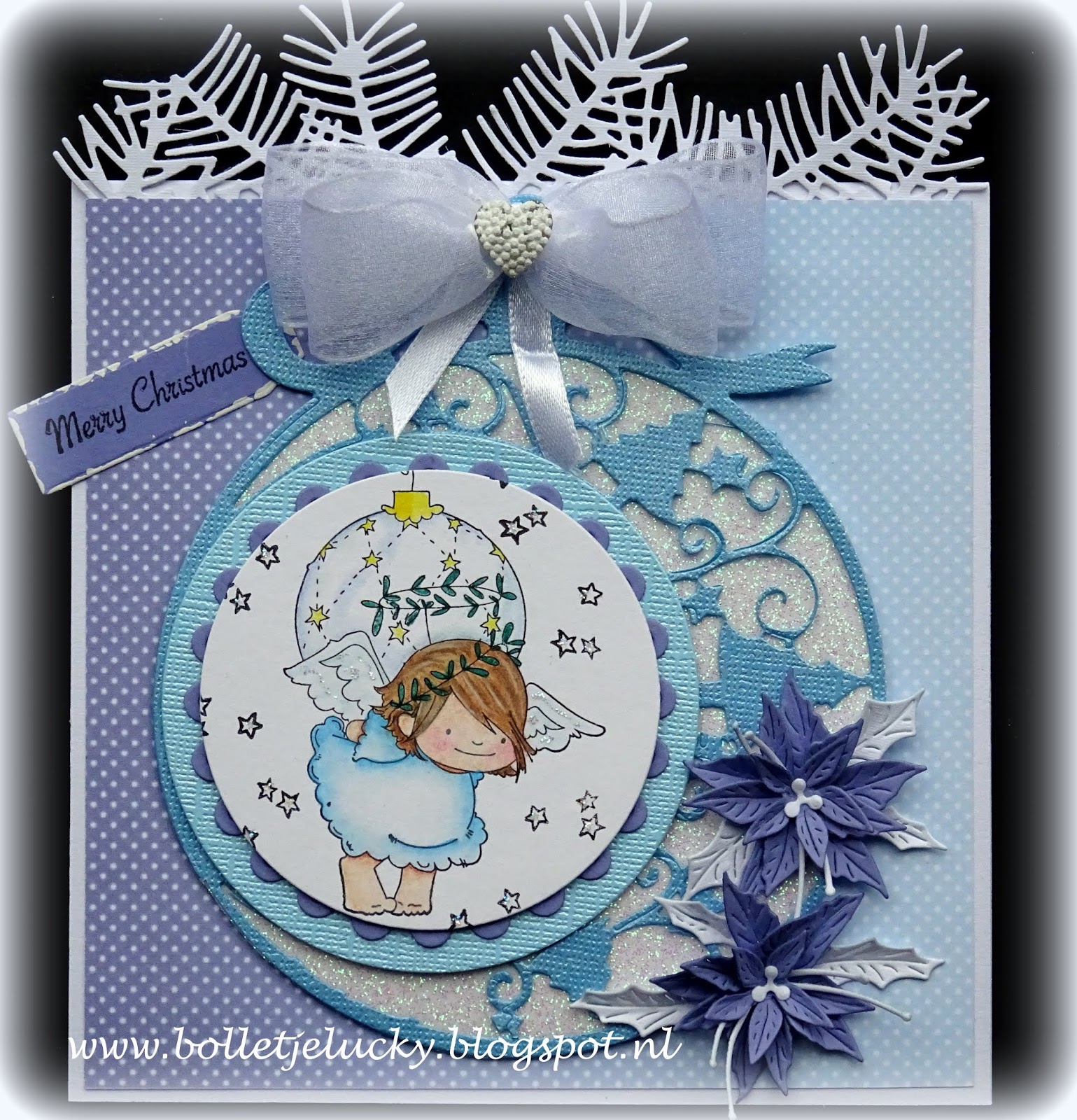 *kerstbal-Creatable LR0560-Marianne Design, *stempeltje-angel squidgie-bells and ornament-Stamping Bella, *labeltje-Action, *cirkelstansen-Nellie's multiframes-MFD025 en MFD055-Nellie Snellen, *border-Memory Box-Pine Needles (2013), *poinsettia-Joy/Noor-6002/1048, *dessinpapier-Yvonne Creations-playful winter-YCPP10003